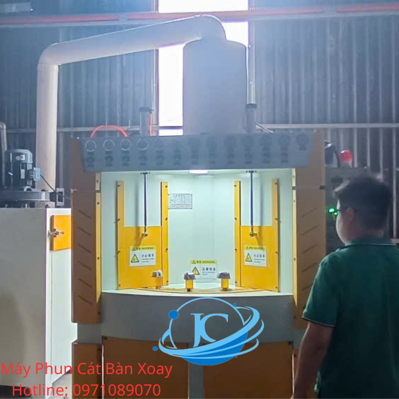 Máy phun cát tự động mâm xoay là thiết bị sử dụng công nghệ phun cát để xử lý bề mặt kim loại, loại bỏ gỉ sét, xỉ hàn, và các tạp chất khác. Máy có mâm xoay tự động, giúp phôi kim loại quay đều, đảm bảo cát được phun đồng đều lên toàn bộ bề mặt.