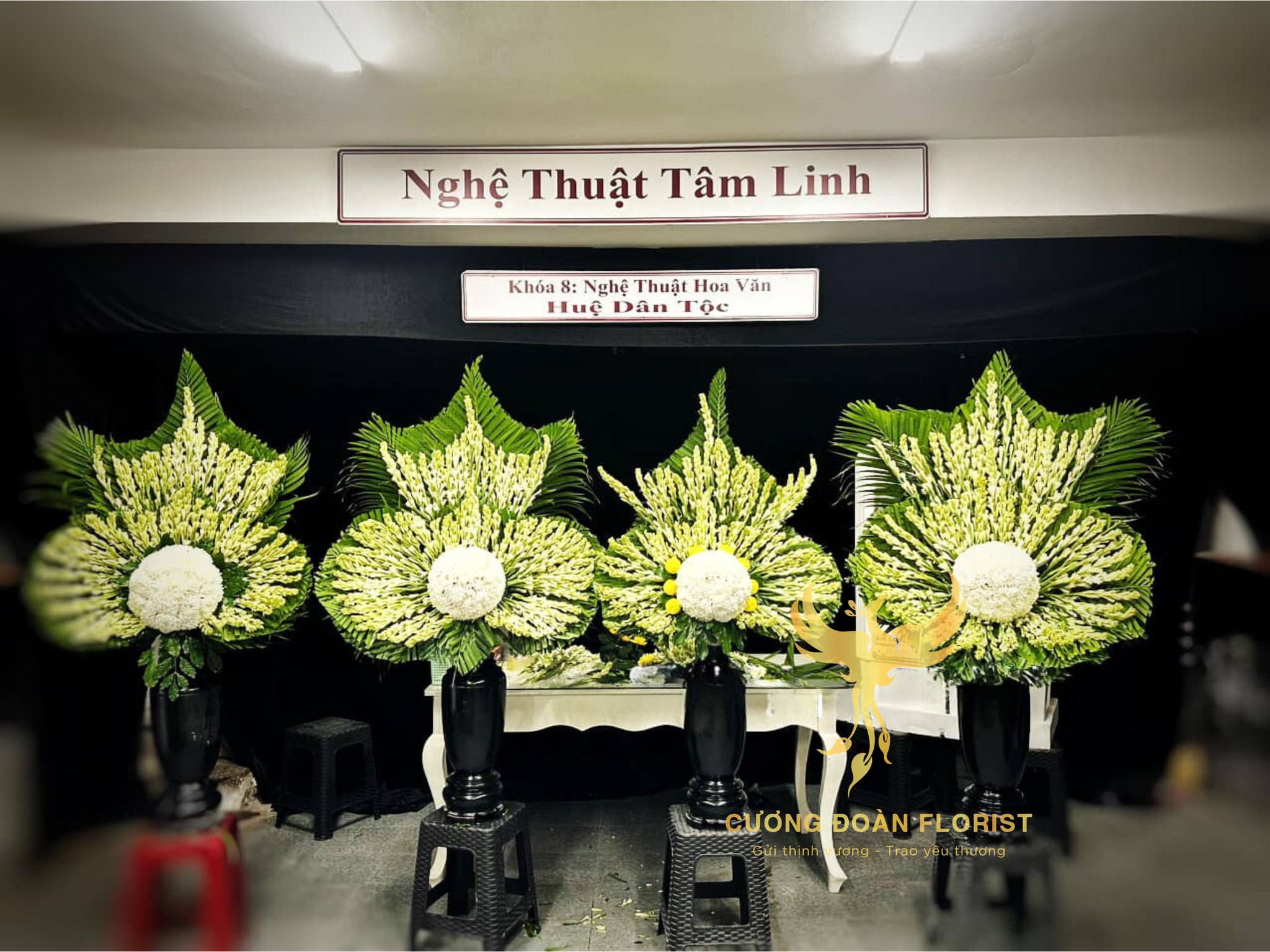 Ngoài ra, Cương Đoàn Florist còn đào tạo Nghệ thuật hoa tâm linh. Bên cạnh việc cung cấp vòng hoa thành kính đẹp, trang nghiêm cho các lễ tang, Cương Đoàn Florist còn được biết đến là đơn vị đào tạo cắm hoa chuyên sâu, đặc biệt là Nghệ thuật hoa tâm linh – lĩnh vực đòi hỏi sự am hiểu sâu sắc về văn hóa, nghi lễ và tính biểu đạt tinh thần qua từng tác phẩm hoa.