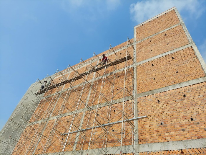 • Nhà khung bê tông cốt thép với mái đổ bê tông và tường xây gạch 20cm.