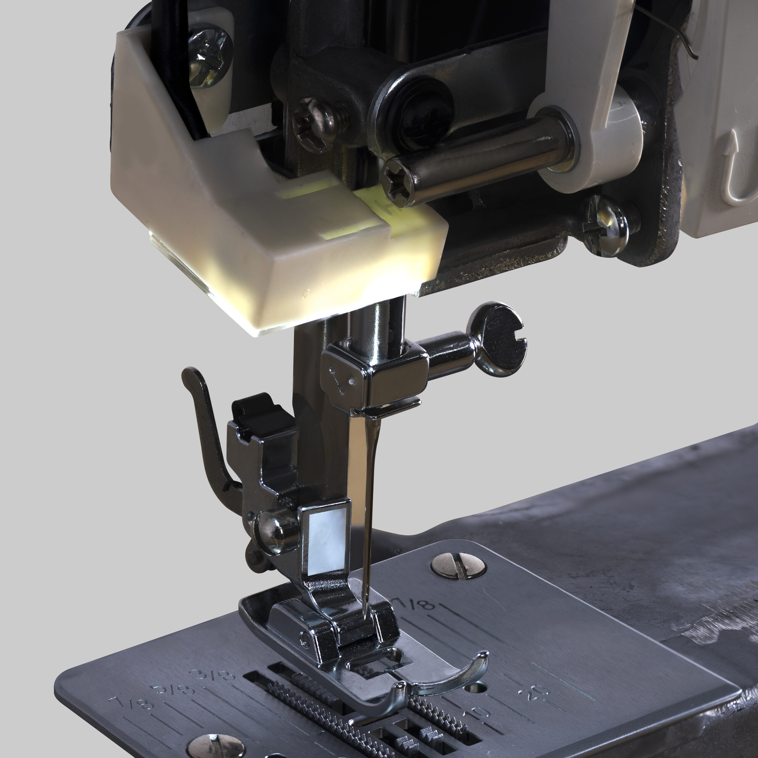 Chân vịt may mũi thẳng được làm từ chất liệu kim loại chống gỉ sét và không dùng cho máy may có kim lệch trục. Chân vịt này được sử dụng để may đường thẳng và tránh bỏ mũi 5mm. Nó thích hợp khi may trên vải mỏng và vải thun co dãn. Chân vịt may mũi thẳng dễ dàng lắp ráp và sử dụng, đồng thời giúp tránh bị kẹt vải trong bàn lừa.